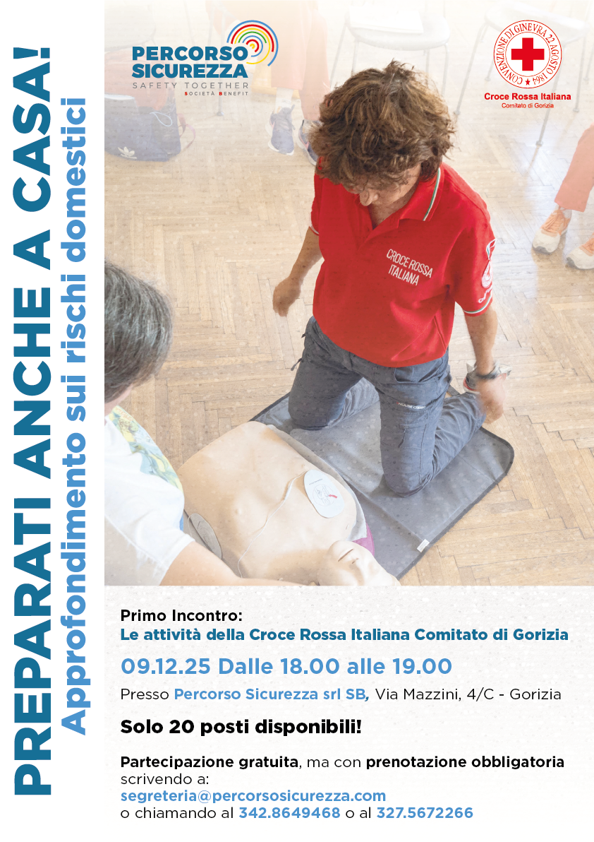 GORIZIA – Prende il via “Preparati anche a casa”, la nuova iniziativa di Percorso Sicurezza srl Società Benefit, società leader nella consulenza e formazione in materia di salute e sicurezza sul lavoro, ma non solo, che dallo scorso 16 ottobre ha inaugurato il proprio Spazio in pieno centro di Gorizia.
